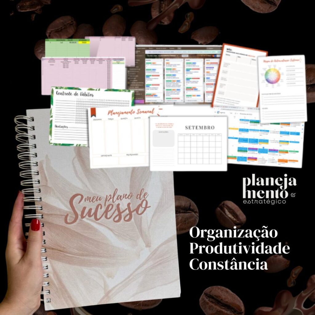 – Todas as minhas Ferramentas de organização, produtividade e constância (online e para imprimir com acesso vitalício na plataforma Hotmart)